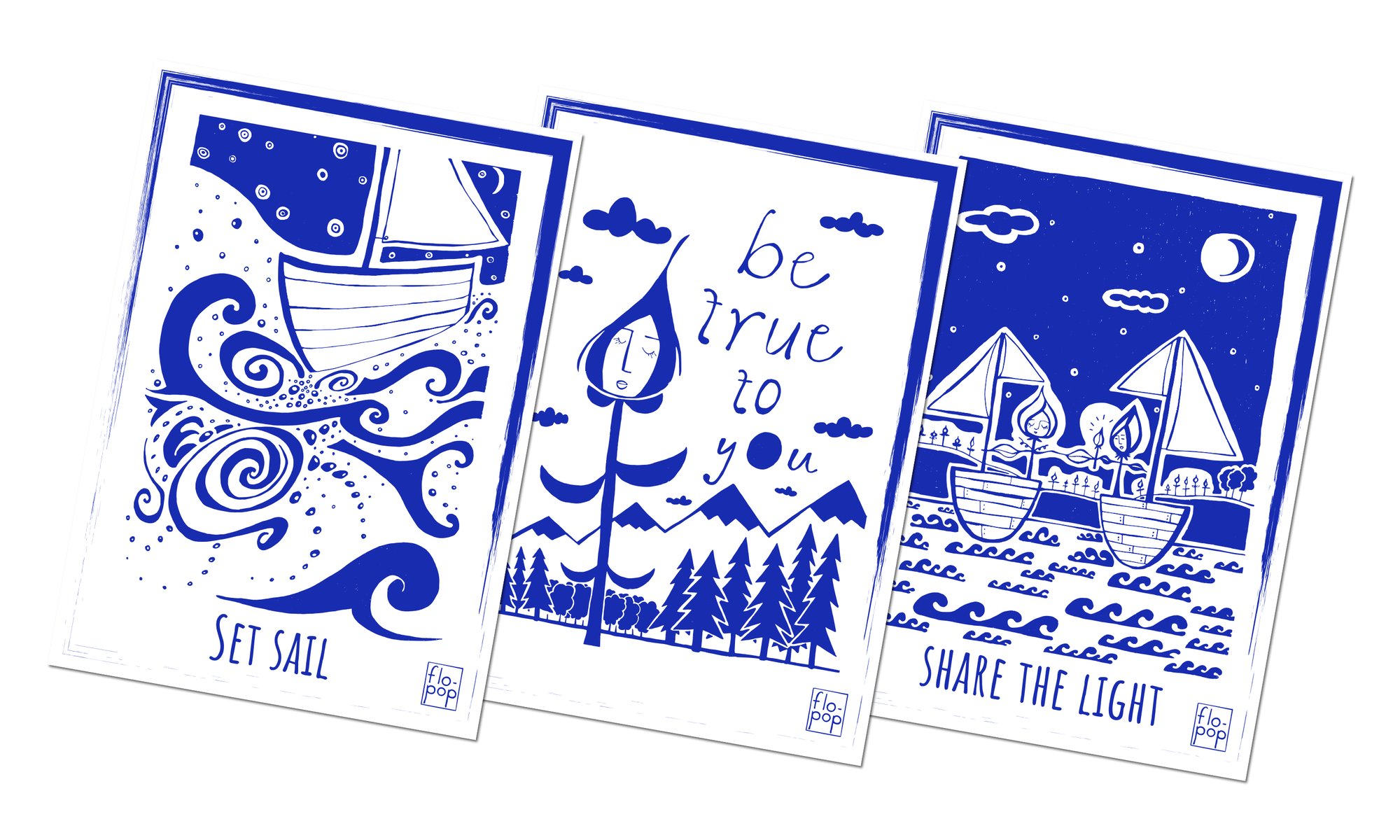 3 Flo Pop original stickers, pre packaged with inspiring medal.